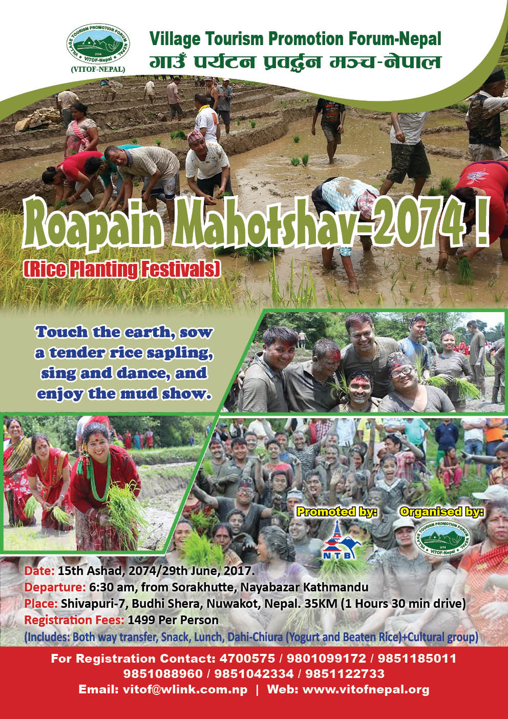 VITOF-Nepal is going organizing the Ropai Mahotsav (Rice Planting Festivals) on 15th Ashad, 2074 ( 29th June 2017) as its regular yearly activities to promote the local culture and traditions. On this occasion, we would like to request you to join and celebrate the Festivals.